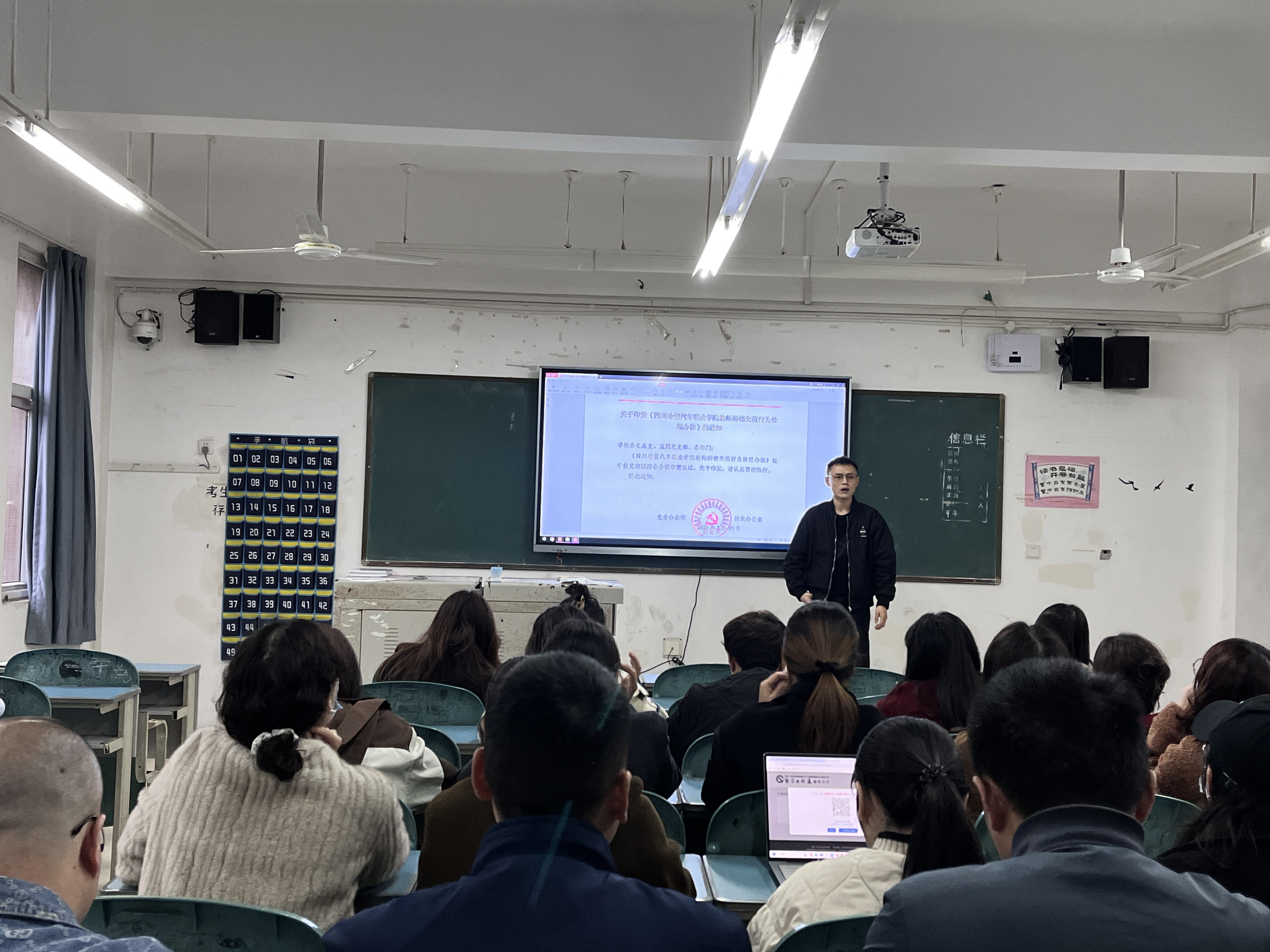 徐海同志领学《四川省高等学校教师师德评价考核办法》、《四川省高等学校教师师德失范行为处理实施细则》、《四川希望汽车职业学院师德标兵评选管理办法》、《四川希望汽车职业学院教师师德失范行为处理办法》等内容,提醒全体教职工务必坚守师德底线,杜绝各类违规违纪行为。江洁同志领学《四川希望汽车职业学院关于建立健全师德建设长效机制实施办法》、《四川希望汽车职业学院党员干部澄清保护机制的实施办法》等内容,强调师德建设长效机制、引导全体教职工依规依纪反映问题,营造风清气正的育人环境。