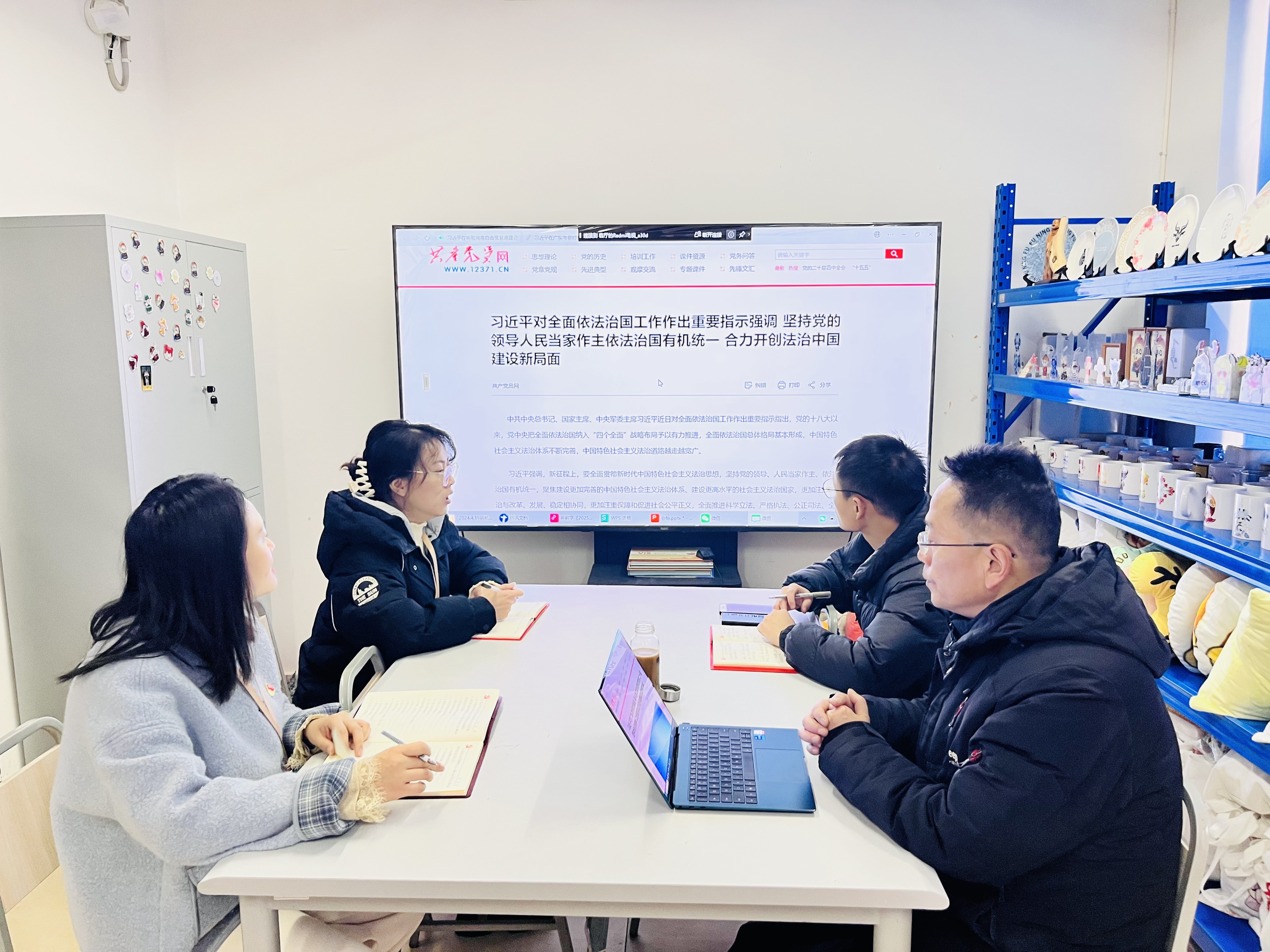 会上,江洁首先领学《习近平法治文选》第一卷、《习近平法治思想学习纲要(2025年版)》出版发行的时代背景和核心要义,强调要把学习成果转化为依法治院、依规治教的制度优势和治理效能。银河、徐海、江钰梅、方丽娟四位同志依次领学了习近平总书记在听取海南自由贸易港建设工作汇报时、在广东考察时、对全面依法治国工作作出的重要指示精神,以及在纪念胡耀邦同志诞辰110周年座谈会上的重要讲话精神,并集体学习了《求是》杂志第22期发表的习近平总书记重要文章《因地制宜发展新质生产力》。领学过程中,大家结合学院专业建设、人才培养、社会服务实际,畅谈体会、碰撞思想,现场氛围热烈。