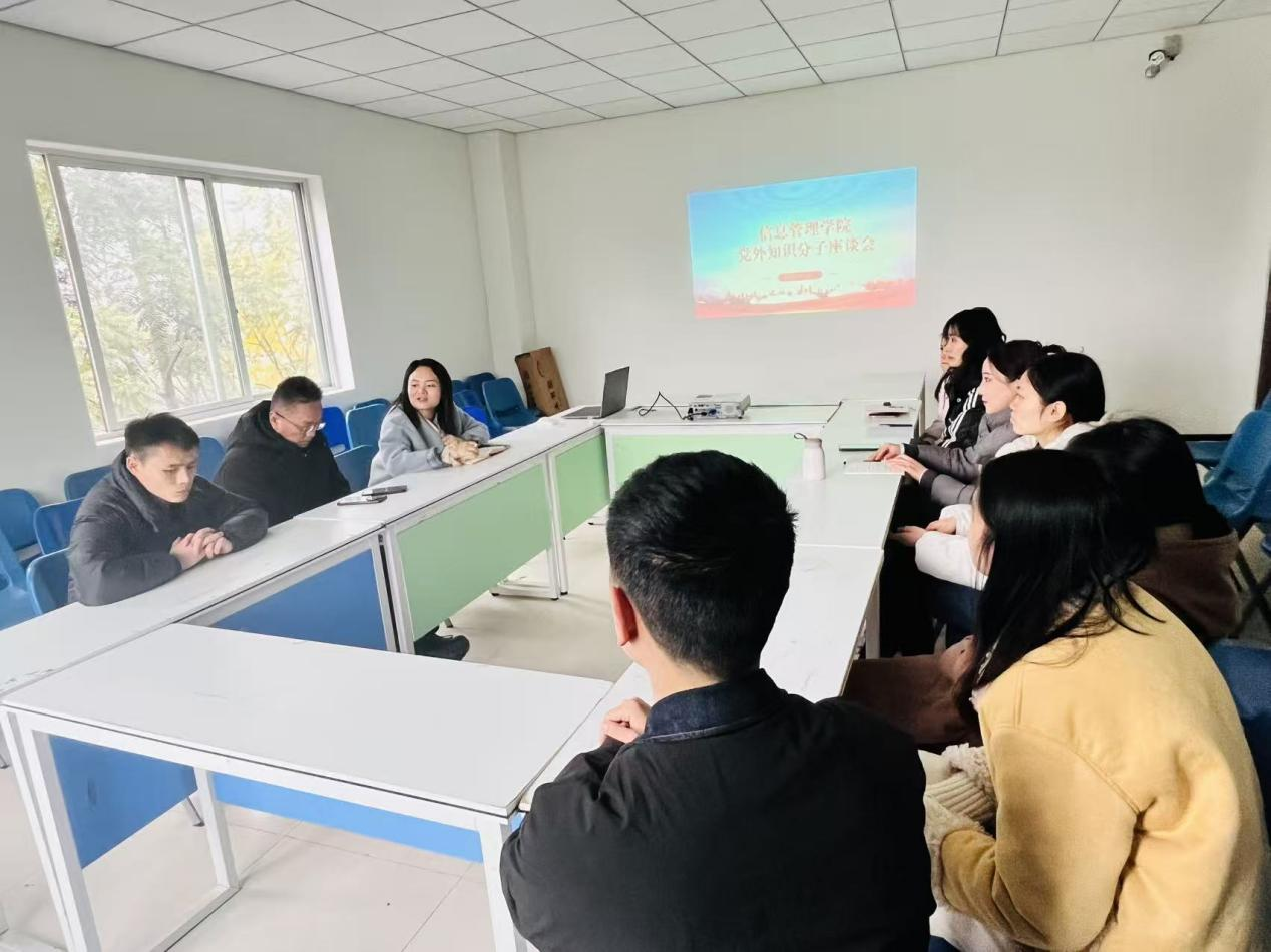 为进一步发挥统一战线优势,广泛听取党外人士意见建议,凝聚发展合力,近日,信息管理学院召开党外人士座谈会。学院党总支书记江洁、院长银河、副院长徐海等领导班子成员,与学院民主党派成员、无党派人士代表齐聚一堂,围绕学院高质量发展深入交流。座谈会由党总支书记江洁主持。