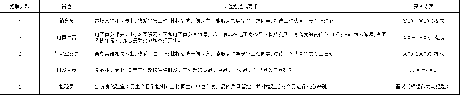 招聘岗位及要求: